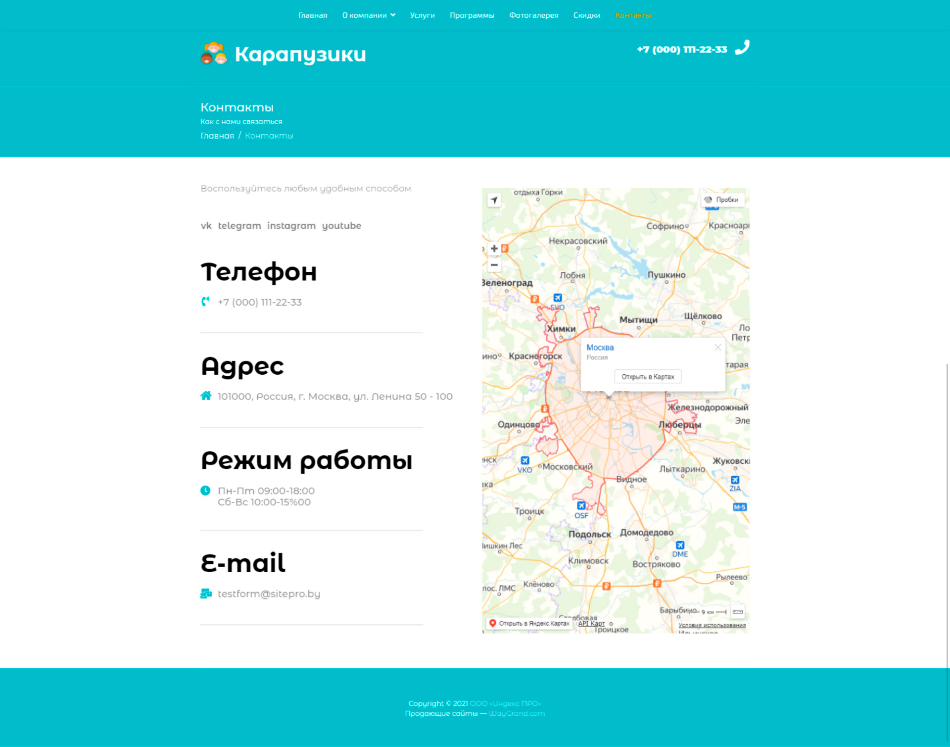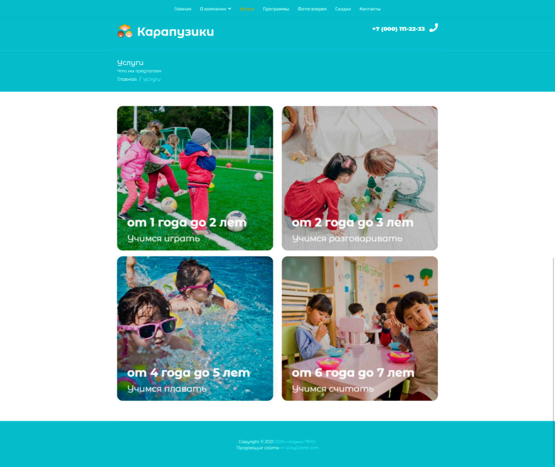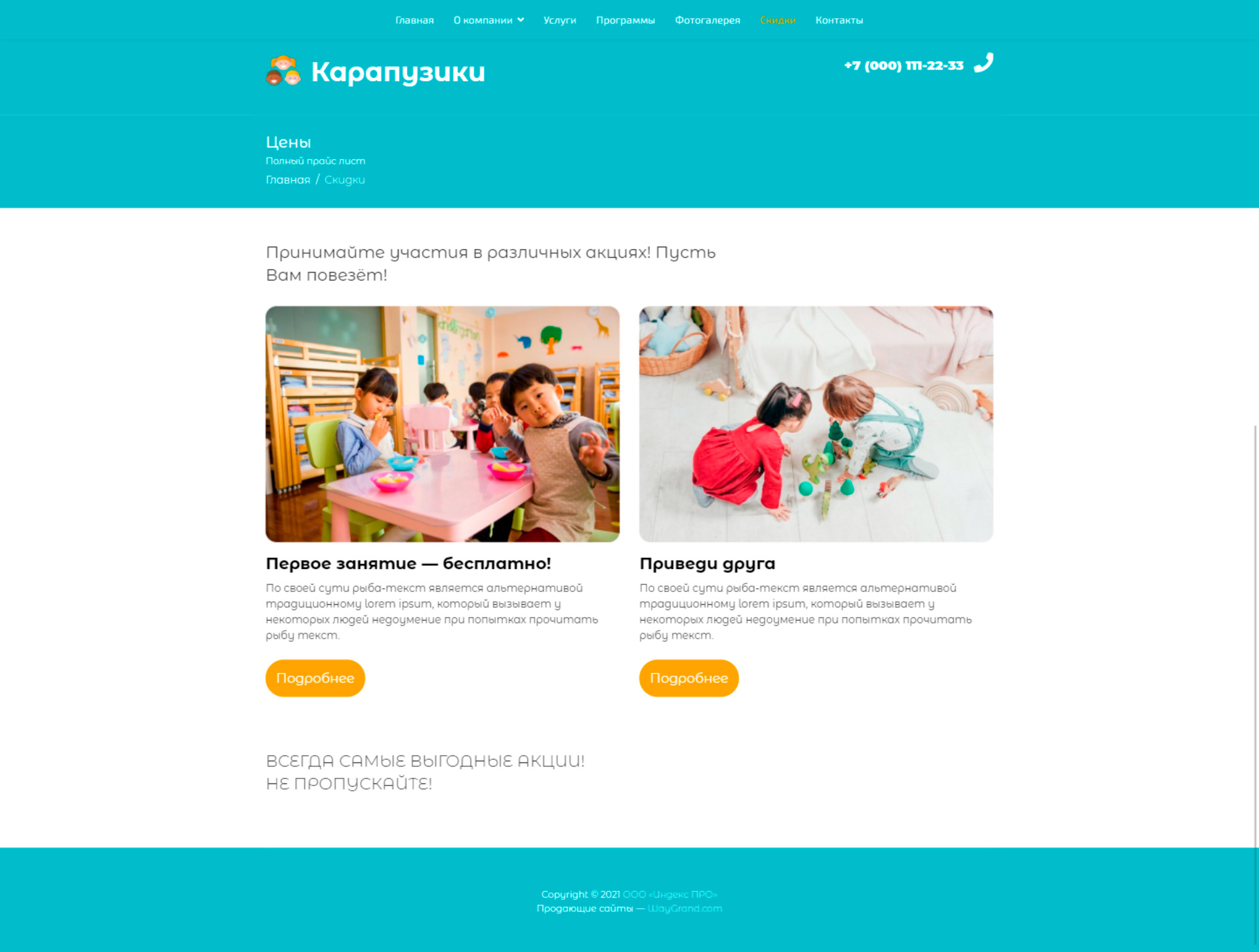 Закажите готовый продающий сайт визитка #0419301 в Жуковском за 5-7 дня «под ключ»: свёрстан, отрисован и готов к рекламе. Тематика шаблона «Частный детский центр».