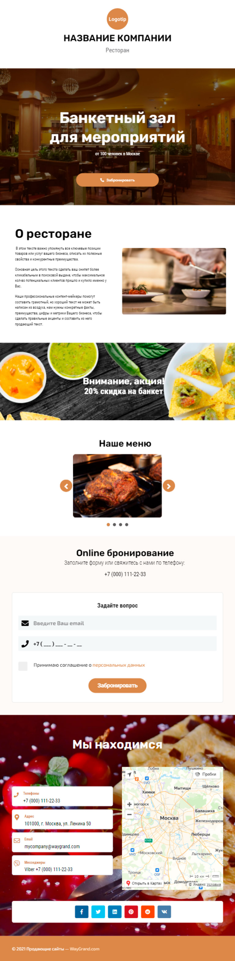 Закажите готовый продающий сайт визитка #0449101 в Жуковском за 5-7 дня «под ключ»: свёрстан, отрисован и готов к рекламе. Тематика шаблона «Банкетный зал для мероприятий».