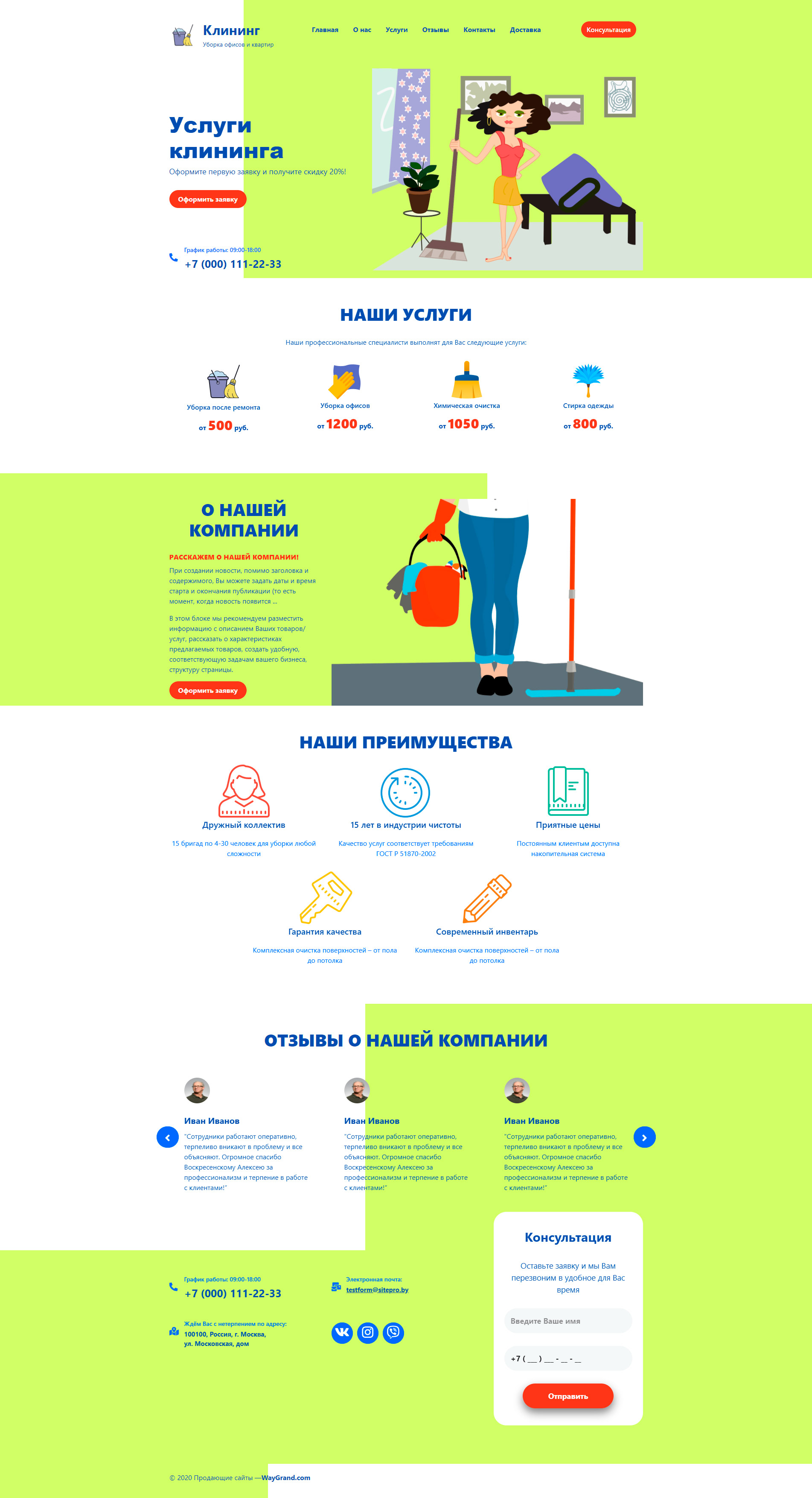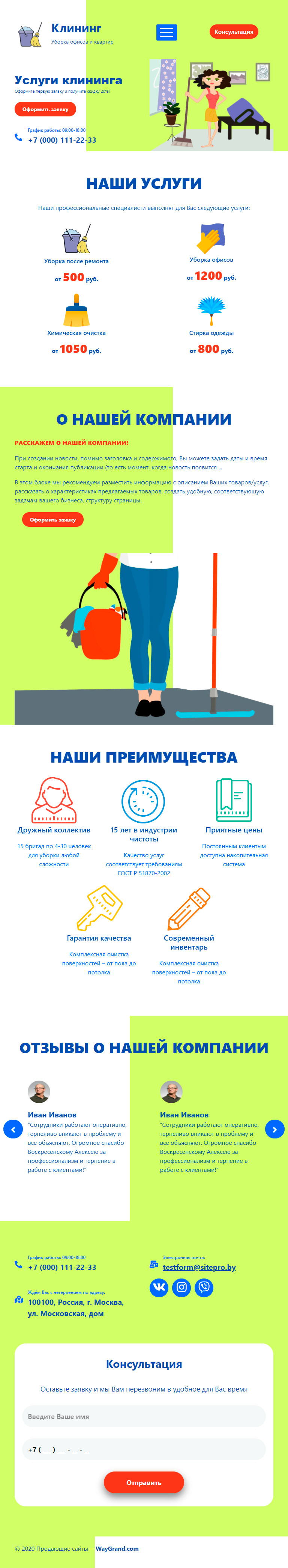 Закажите готовый продающий сайт лендинг #0628202 в Жуковском за 1-3 дня «под ключ»: свёрстан, отрисован и готов к рекламе. Тематика шаблона «Услуги клининга».