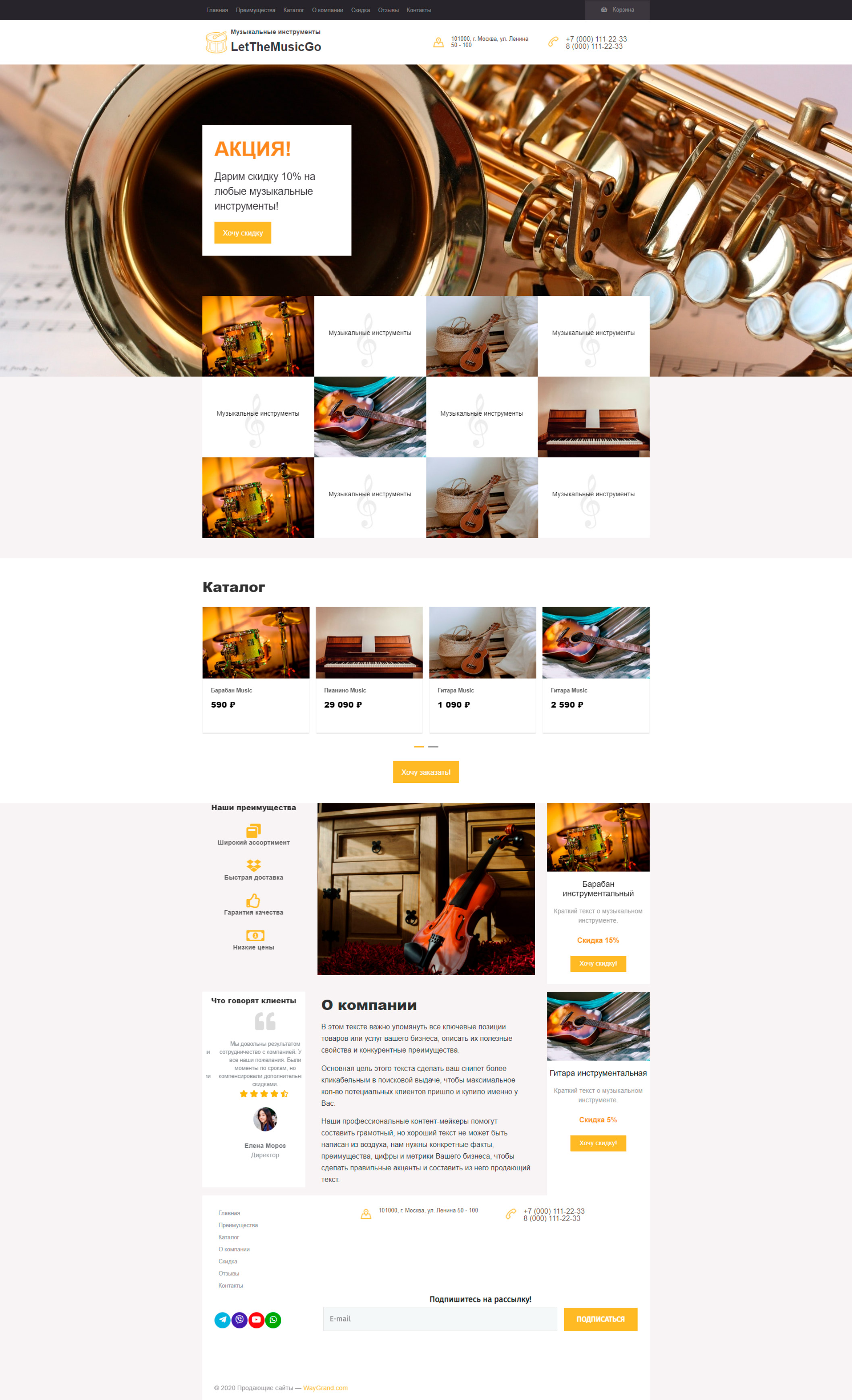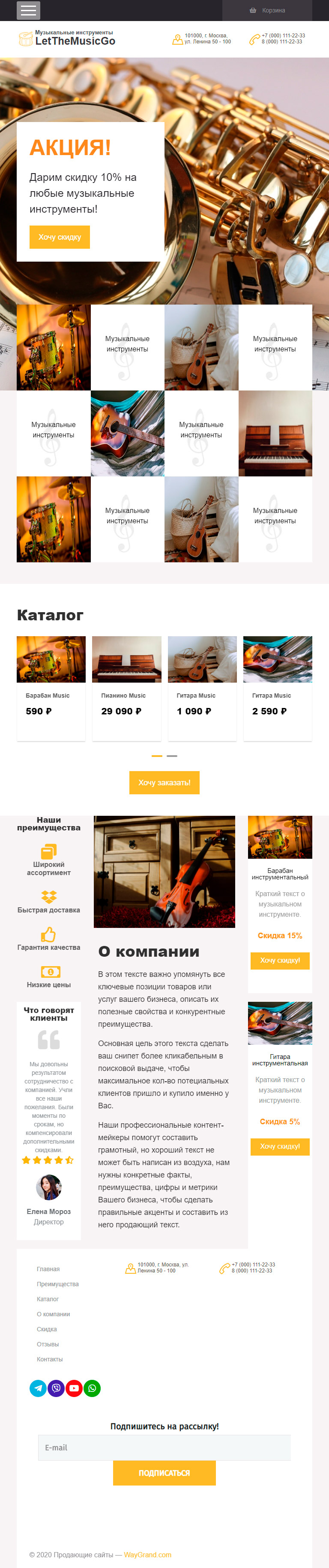 Закажите готовый продающий сайт лендинг #0710201 в Жуковском за 1-3 дня «под ключ»: свёрстан, отрисован и готов к рекламе. Тематика шаблона «Музыкальные инструменты».