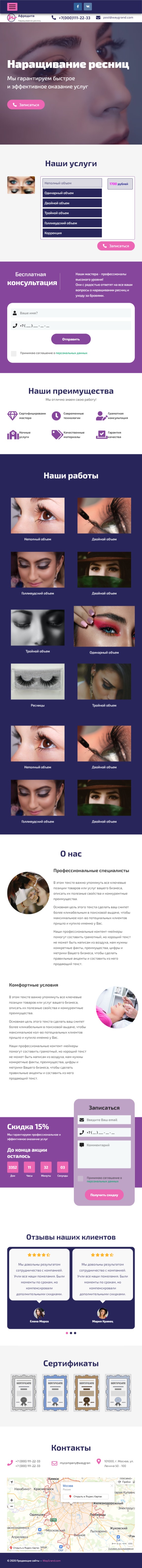 Закажите готовый продающий сайт лендинг #1117201 в Жуковском за 1-3 дня «под ключ»: свёрстан, отрисован и готов к рекламе. Тематика шаблона «Наращивание ресниц».