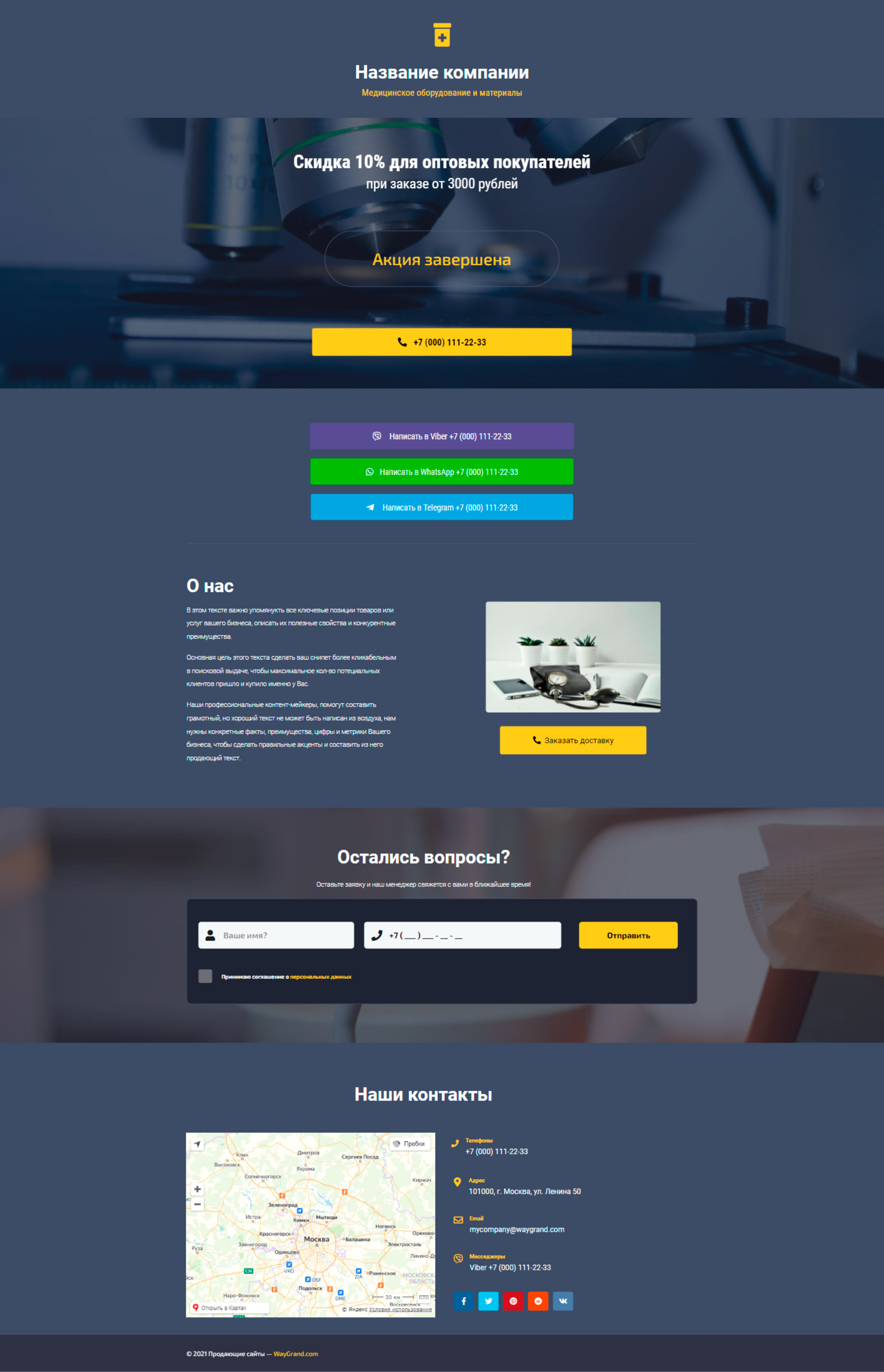 Закажите готовый продающий сайт визитка #1027101 в Жуковском за 5-7 дня «под ключ»: свёрстан, отрисован и готов к рекламе. Тематика шаблона «Медицинское оборудование и материалы».