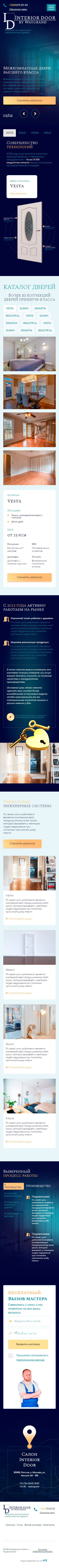 - Промоблок "Межкомнатные двери высшего класса" с кнопкой призыва к действию "Скачать каталог"