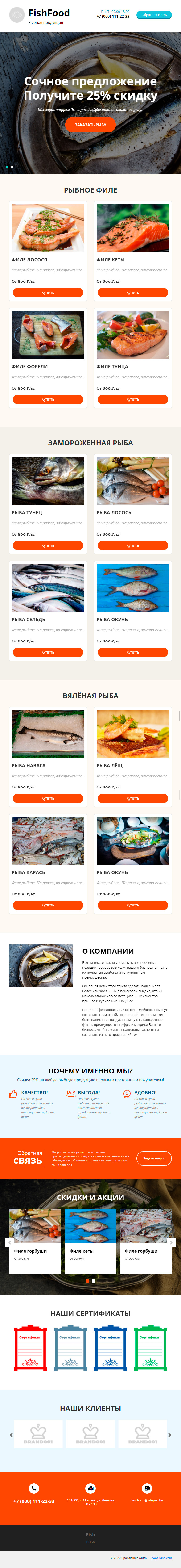 Закажите готовый продающий сайт лендинг #1731201 в Жуковском за 1-3 дня «под ключ»: свёрстан, отрисован и готов к рекламе. Тематика шаблона «Рыбная продукция».