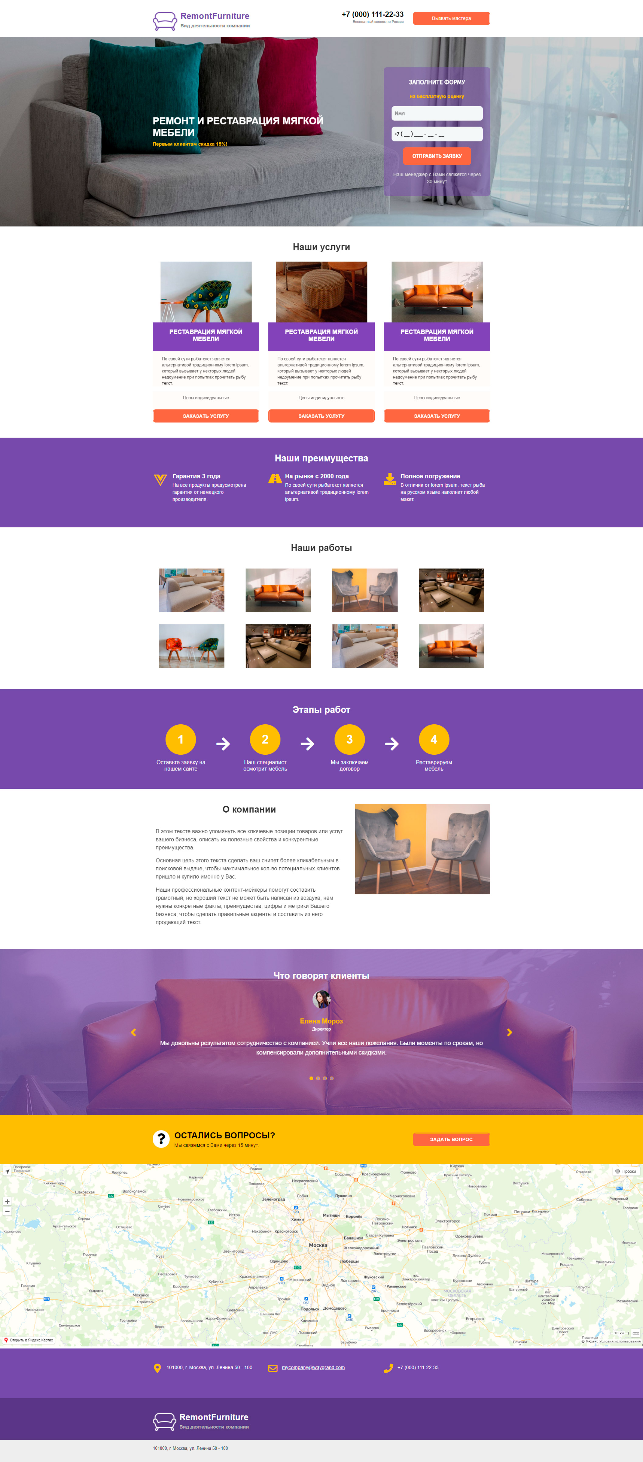 Закажите готовый продающий сайт лендинг #0924201 в Жуковском за 1-3 дня «под ключ»: свёрстан, отрисован и готов к рекламе. Тематика шаблона «Ремонт и реставрация мебели».