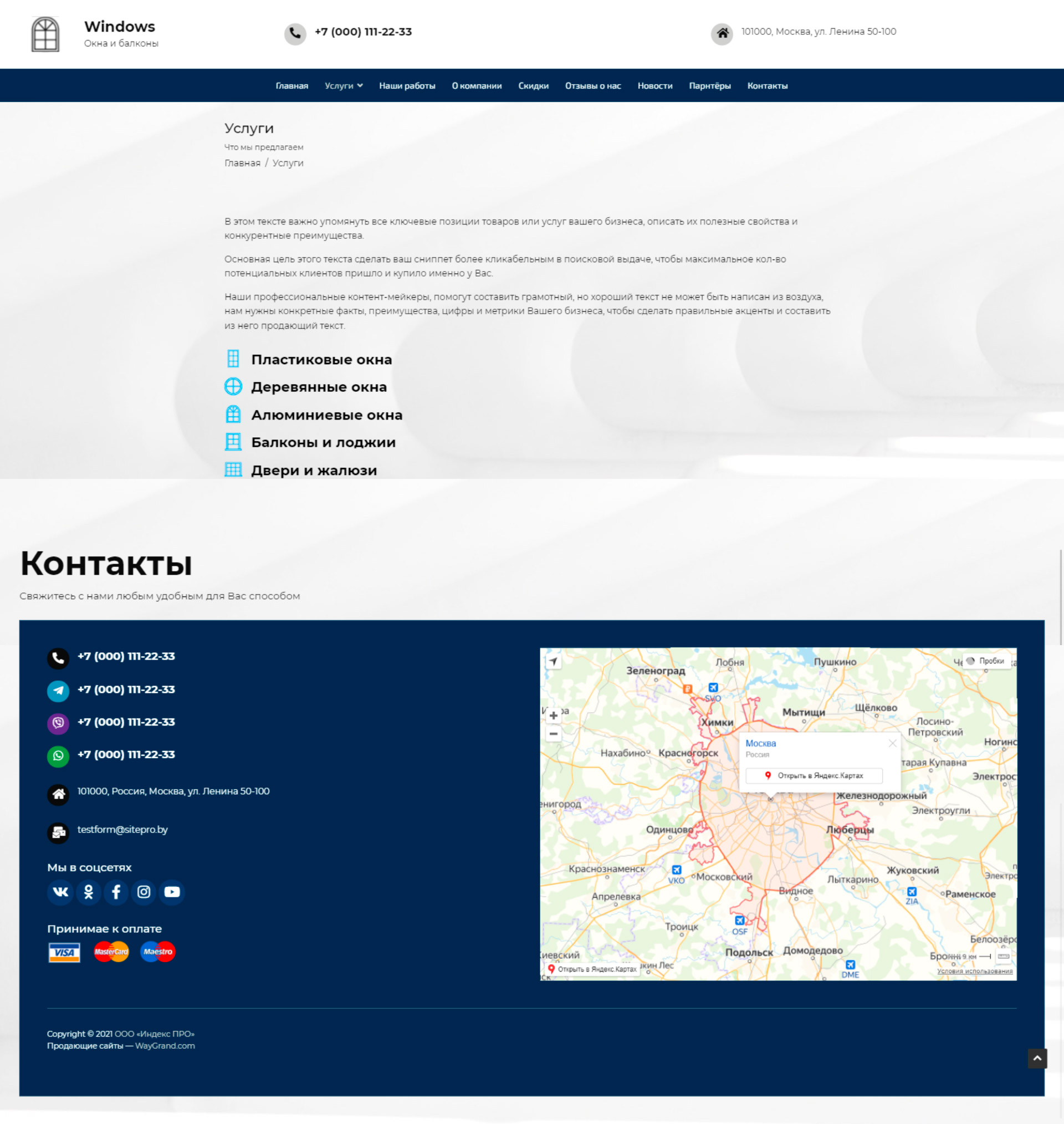Закажите готовый продающий сайт визитка #2034302 в Жуковском за 5-7 дня «под ключ»: свёрстан, отрисован и готов к рекламе. Тематика шаблона «Окна и балконы».