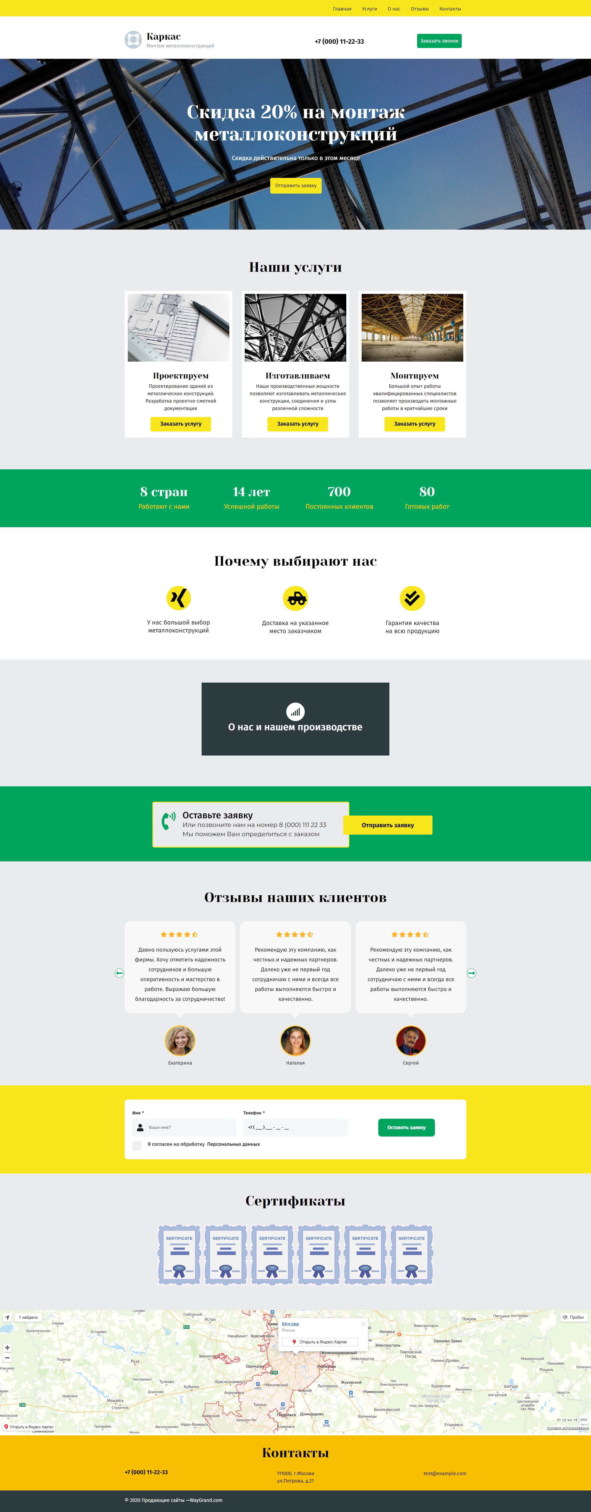 Закажите готовый продающий сайт лендинг #2027201 в Жуковском за 1-3 дня «под ключ»: свёрстан, отрисован и готов к рекламе. Тематика шаблона «Металлоконструкции».