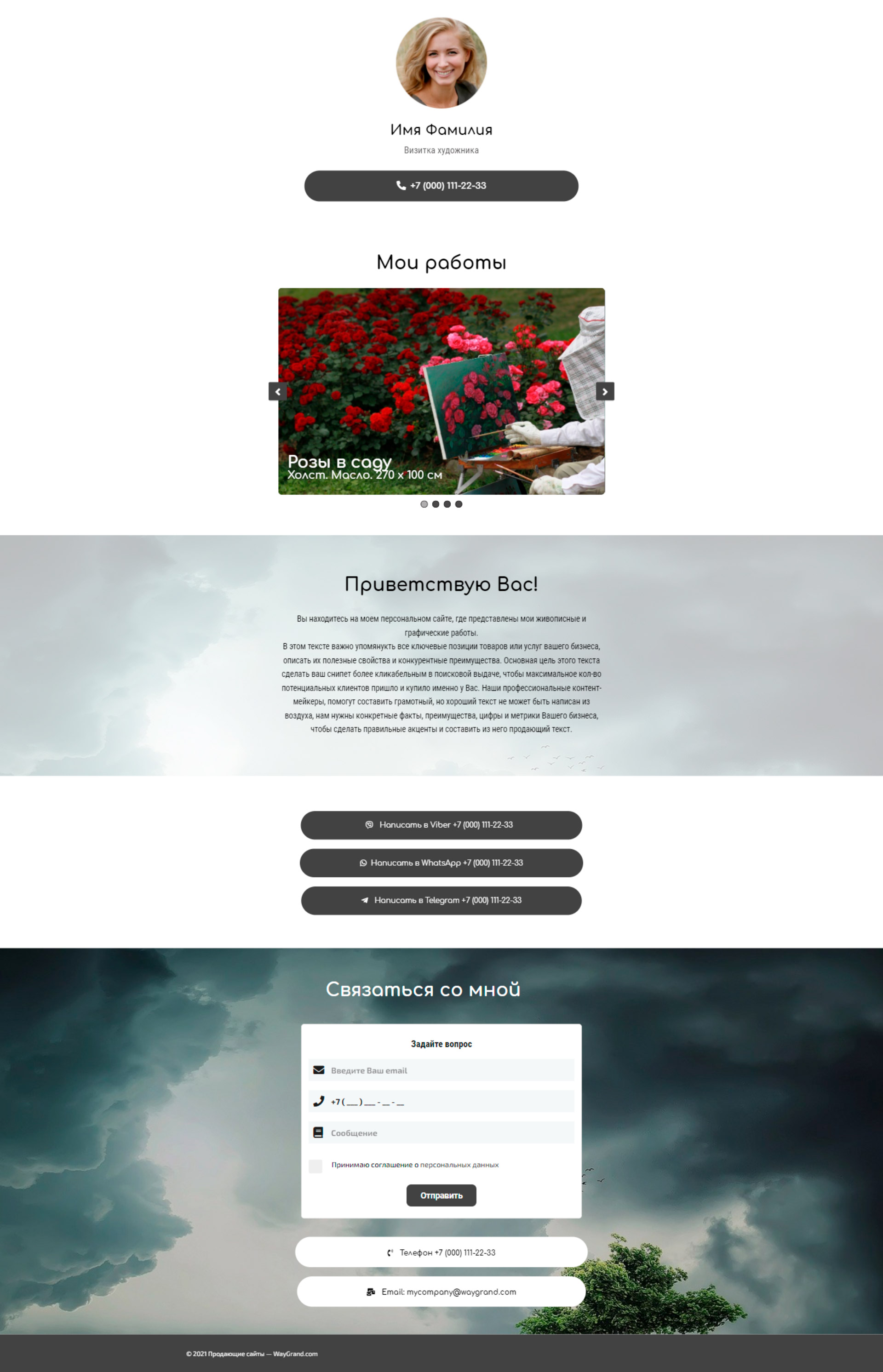Закажите готовый продающий сайт визитка #0826101 в Жуковском за 5-7 дня «под ключ»: свёрстан, отрисован и готов к рекламе. Тематика шаблона «Визитка художника».
