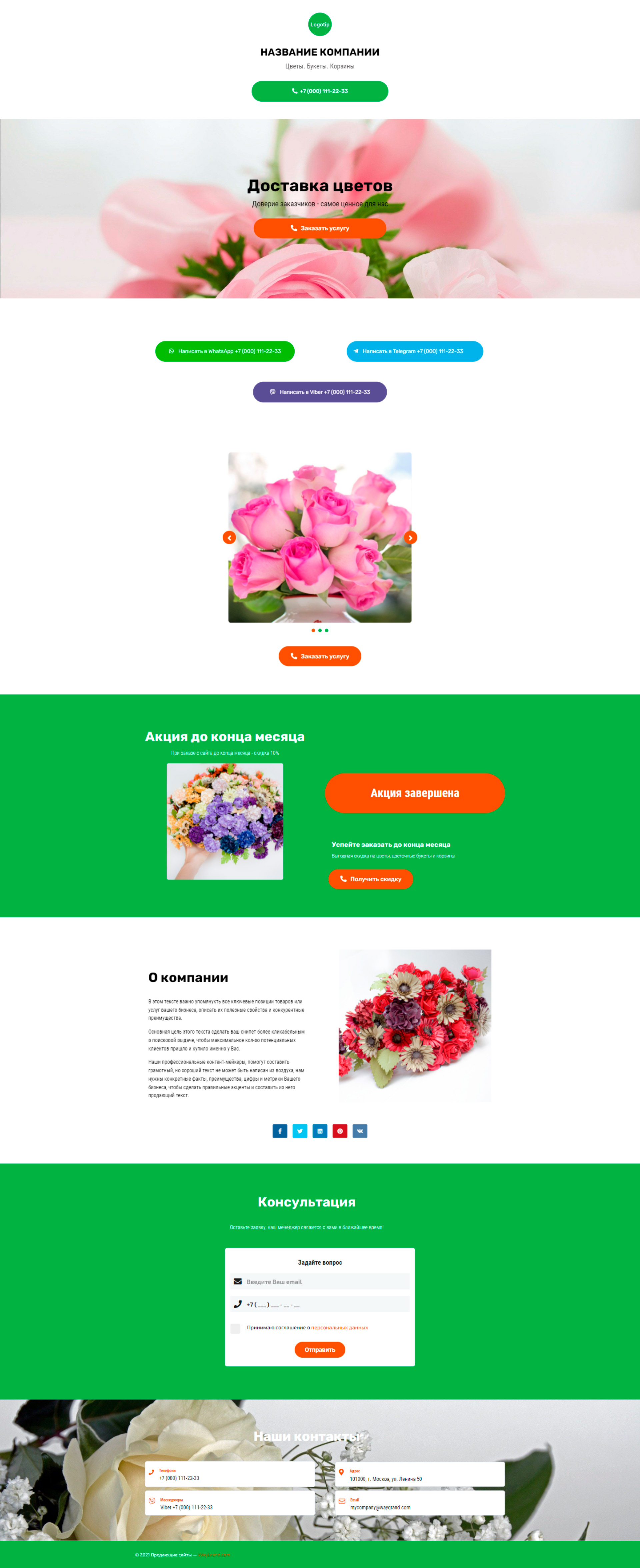Закажите готовый продающий сайт визитка #2404101 в Жуковском за 5-7 дня «под ключ»: свёрстан, отрисован и готов к рекламе. Тематика шаблона «Доставка цветов».