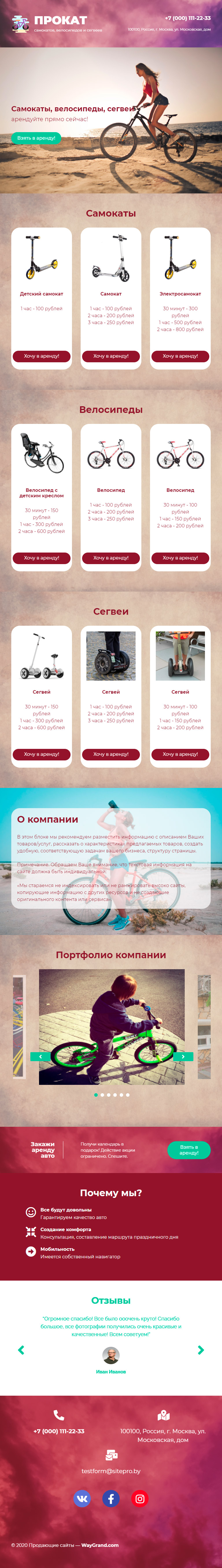Закажите готовый продающий сайт лендинг #1907201 в Жуковском за 1-3 дня «под ключ»: свёрстан, отрисован и готов к рекламе. Тематика шаблона «Прокат самокатов и велосипедов».