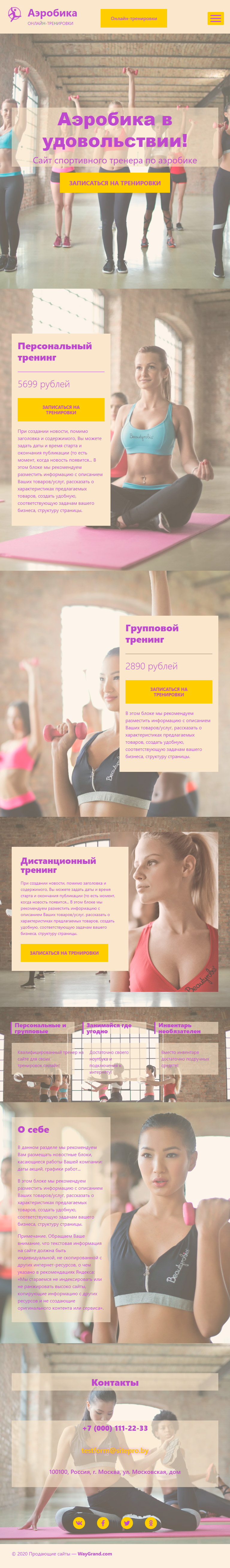 Закажите готовый продающий сайт лендинг #1955207 в Жуковском за 1-3 дня «под ключ»: свёрстан, отрисован и готов к рекламе. Тематика шаблона «Аэробика онлайн тренировки».