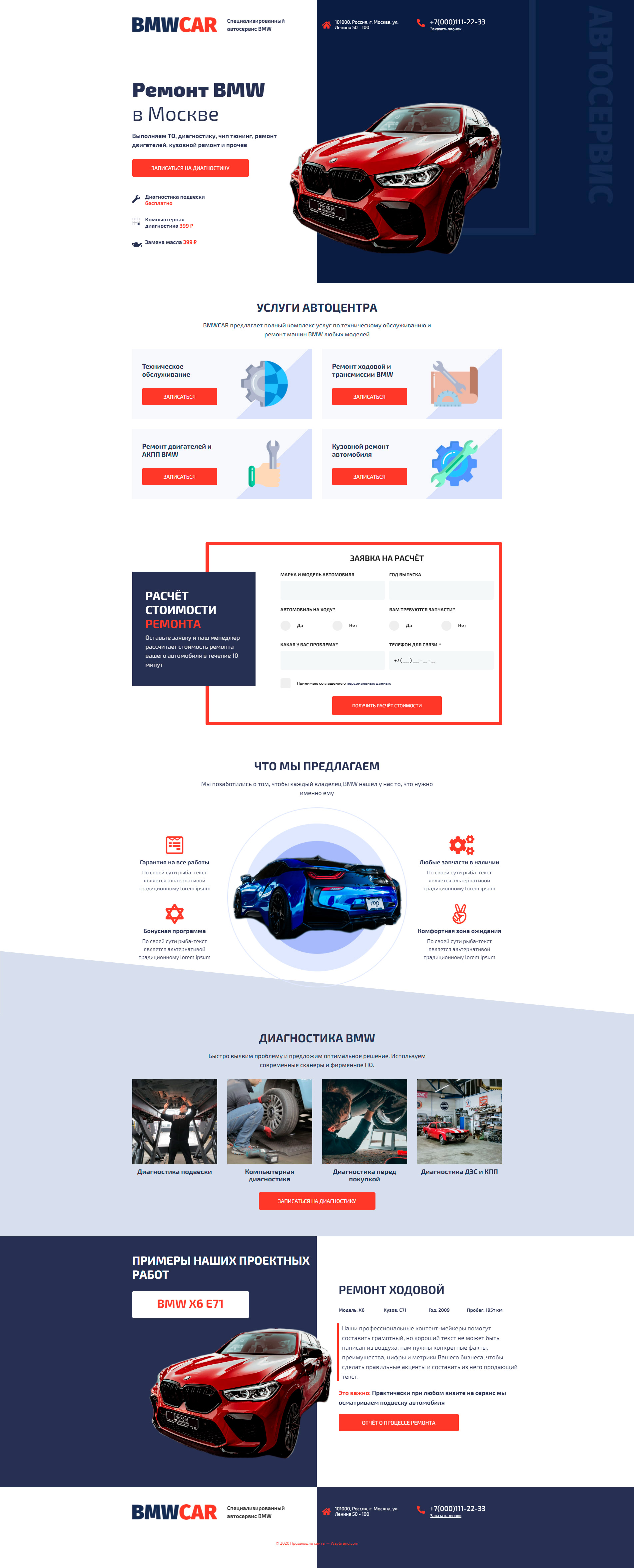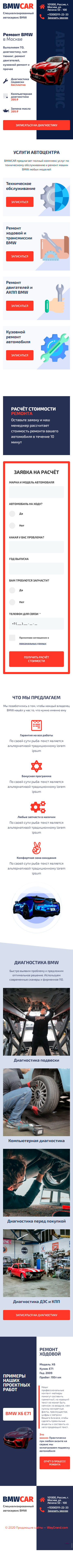 Закажите готовый продающий сайт лендинг #0210202 в Жуковском за 1-3 дня «под ключ» по выгодным ценам на WayGrand: свёрстан, отрисован и готов к рекламе. Тематика шаблона «Ремонт BMW».