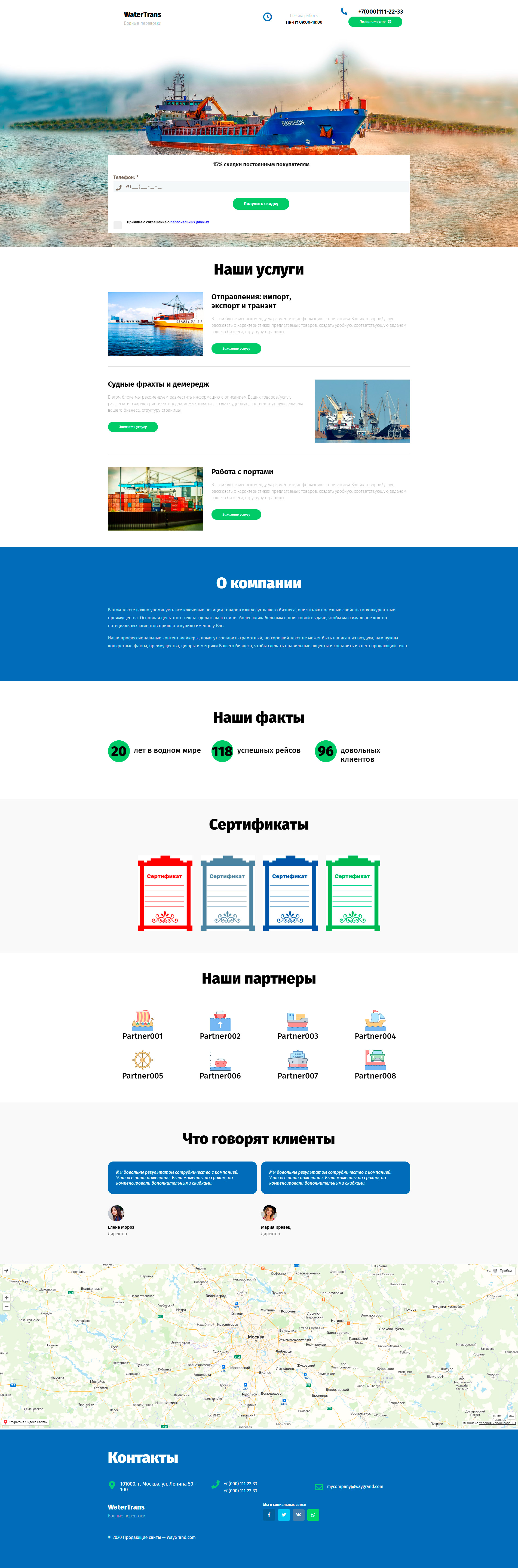 Закажите готовый продающий сайт лендинг #1908201 в Жуковском за 1-3 дня «под ключ»: свёрстан, отрисован и готов к рекламе. Тематика шаблона «Морские перевозки».