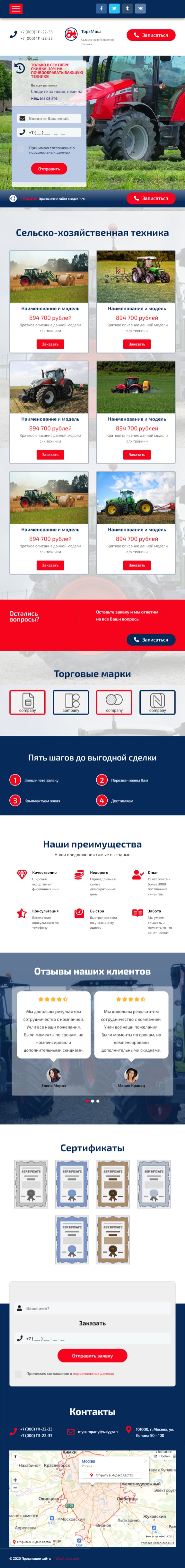 Закажите готовый продающий сайт лендинг #2553202 в Жуковском за 1-3 дня «под ключ»: свёрстан, отрисован и готов к рекламе. Тематика шаблона «Сельско-хозяйственная техника».